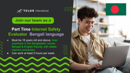 👉 APPLICATION LINK: https://jobs.telusinternational.com/en_US/careers/PipelineDetail/Internet-Safety-Evaluator-Bangladesh-Bengali-Language/41780
