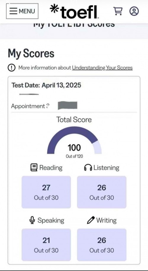 UPDATE TOEFL PAST SCORES